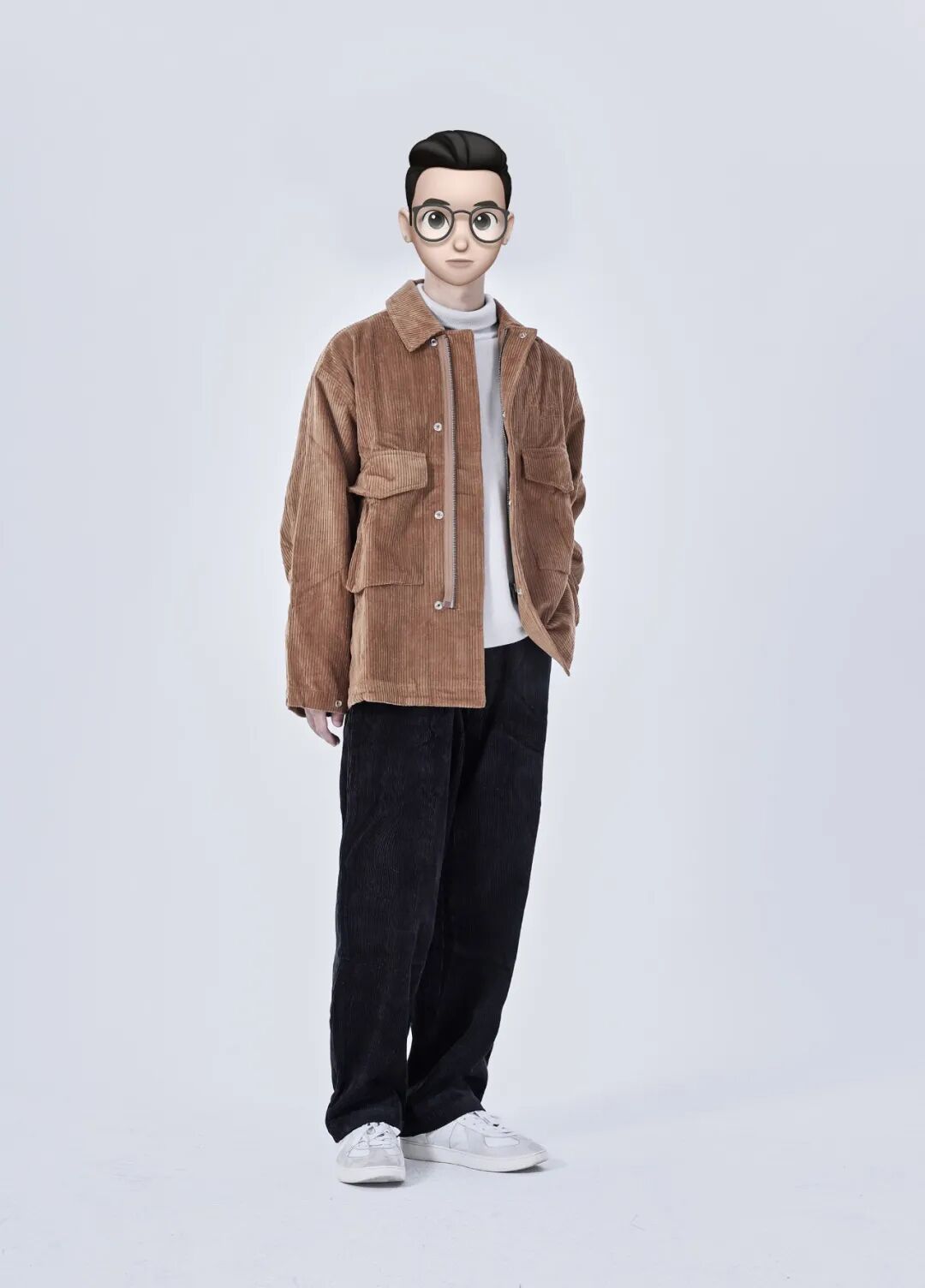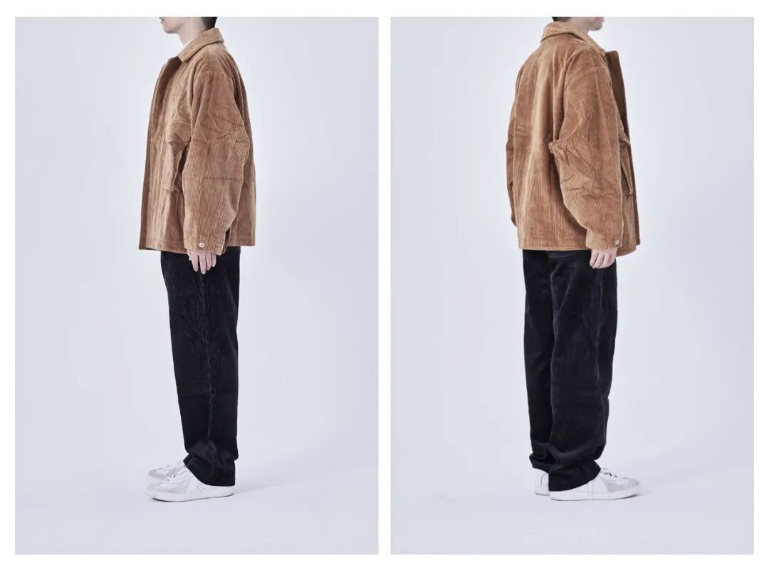 不得不说,统一质感的搭配整体性是真的很强!成套的灯芯绒搭配,流露出几分复古休闲感,加上一双小白鞋,其舒适感更加不言而喻了。