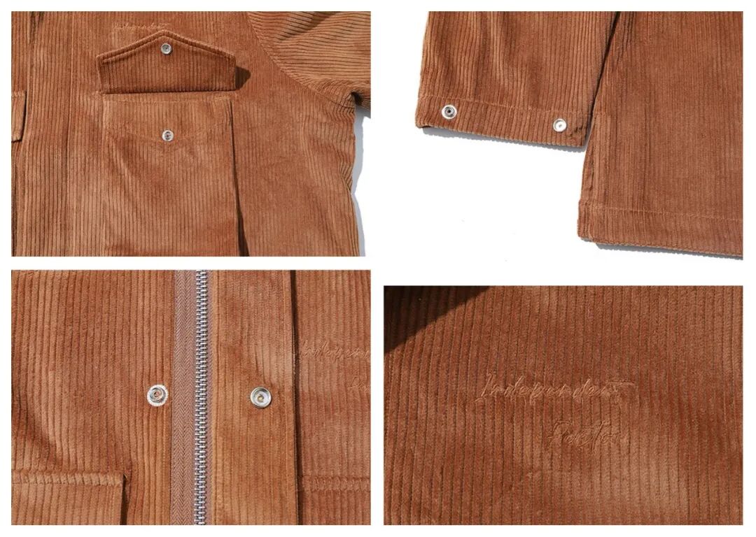 夹克选用粗坑重磅灯芯绒面料,经洗水工艺制作,成衣自带复古质感!文艺翻领,上立体口袋设计,拉链+按钮双门襟设计,以及腰部设置岔口,该有的细节都有,层次非常多。喜欢Vintage风格的,这件冲了!