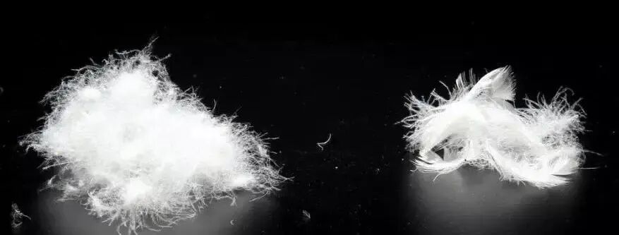 左边为鹅绒,右边为鸭绒