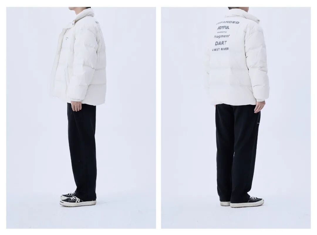 外表选用光泽高级的面料,内里填充80%白鸭绒,保暖舒适很蓬松,上身视觉与穿着体验都超nice!而且版型宽松,根本不用担心内搭多厚,都能轻松驾驭!后幅超帅消逝文字印花设计,仿佛在提醒你:今晚跨年,想对ta说的话别溜走了~