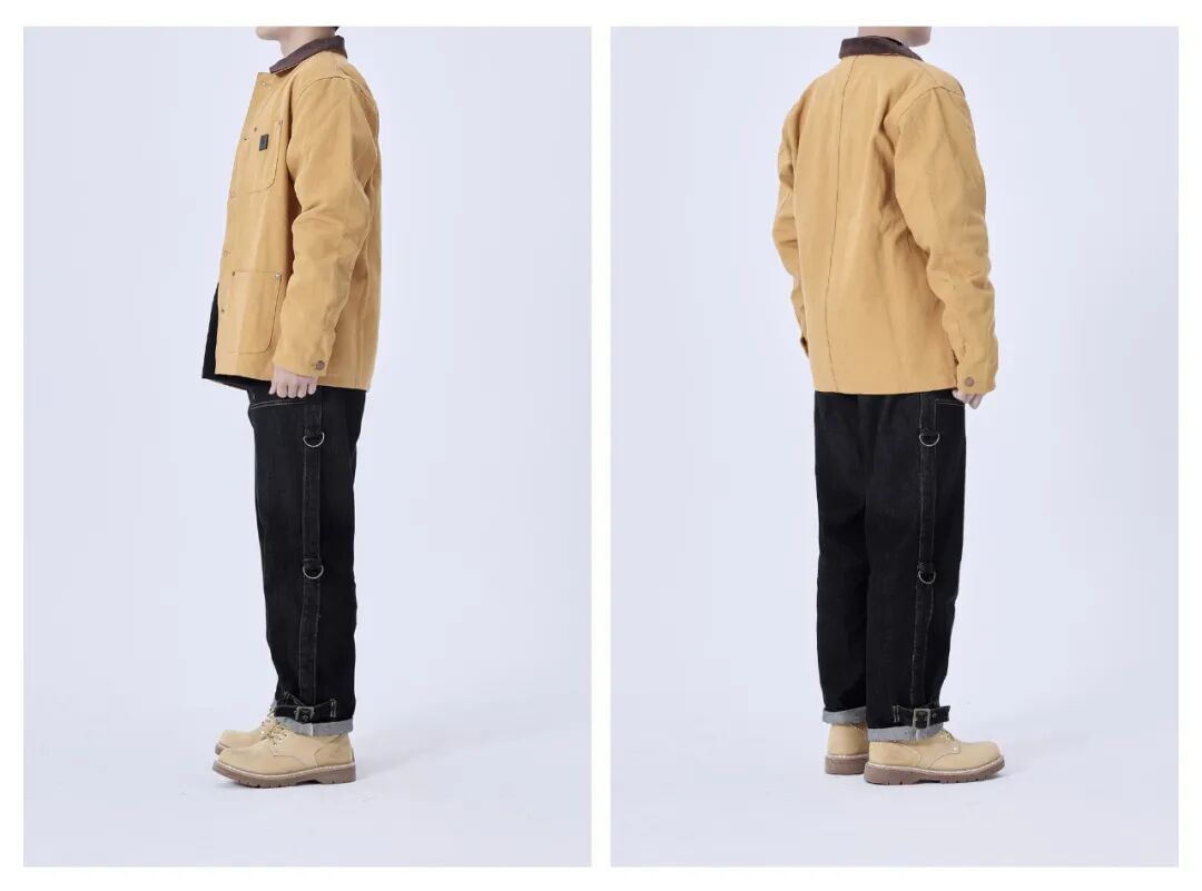 这款铁道服采用了中长型设计的经典密歇根样式,全纽扣四袋设计,且左侧胸袋设置袋盖,整体的收纳能力可见一斑!成衣选用重磅进口帆布面料,结合内里的羊毛混纺呢子,保暖能力也十分出众~颜色方面有姜黄、黑色两款,个人更喜欢姜黄,真的非常适合亚洲人,下身搭配牛仔裤简直yyds!喜欢美式工装的不要错过啦~
