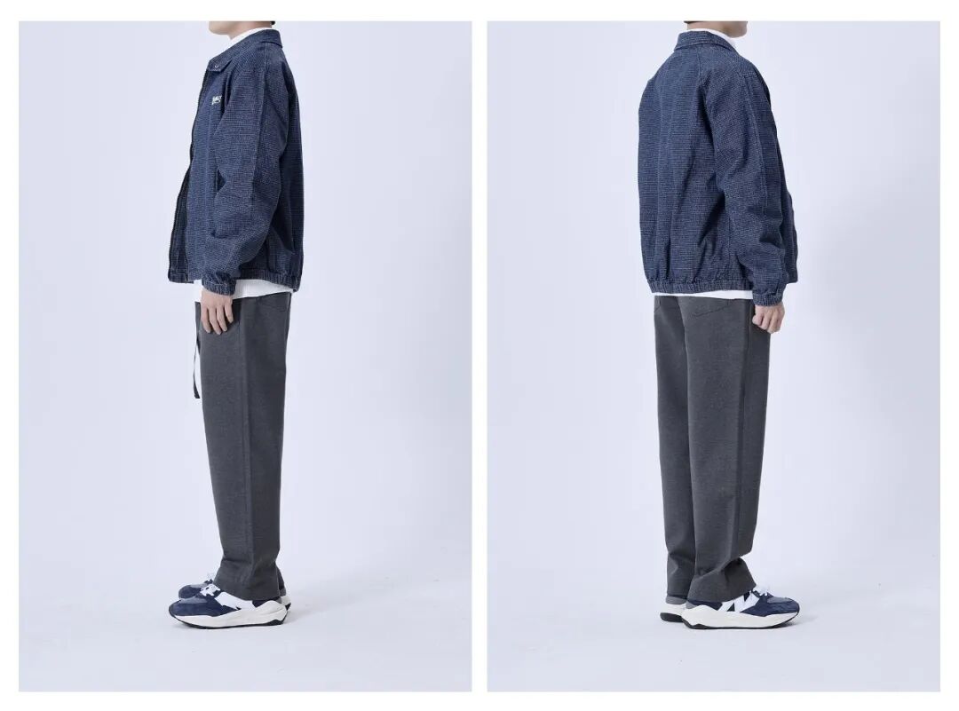 衣服的灵感来自于经典美式拉链夹克,采用耐磨的高密度丹宁面料制作,设计上保留了经典的立领以及附有袋盖的斜插口袋。衣长为短夹克造型,将原有的抽绳式下摆改为松紧下摆,让衣身更挺拔,也能起到防风作用。搭配方面也比经典款选择性更多,除了同为牛仔面料的裤装,各种直筒裤、阔腿裤也能轻松拿捏!