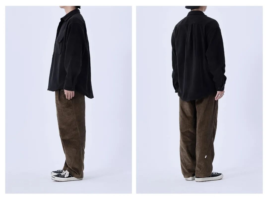 之前就有小伙伴问到灯芯绒裤子怎么搭,一般情况下,搭配同为灯芯绒的外套是最保守不过了;当然也可以参考今天这套,选择质感上比较有分量、厚实的,轻松拿捏复古感。