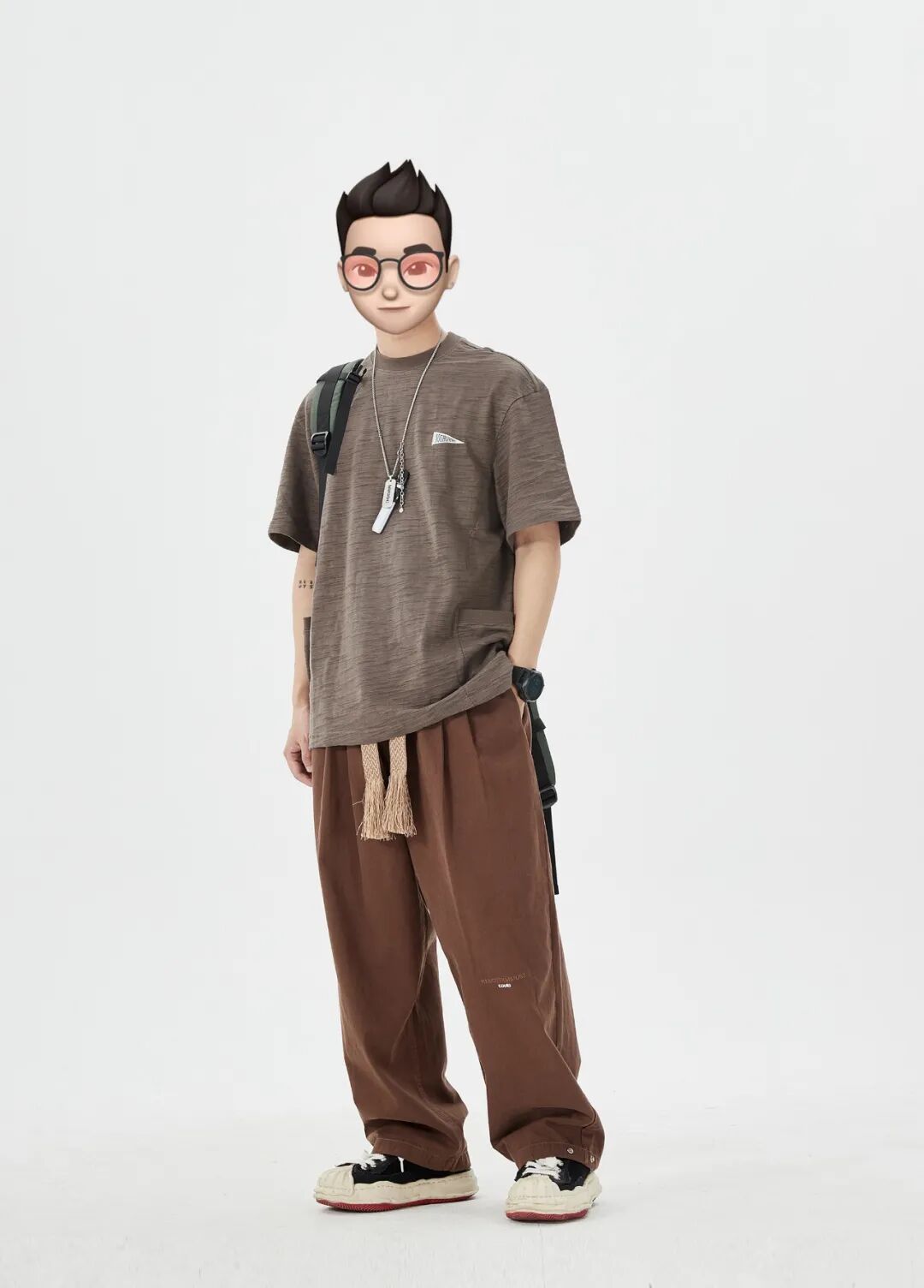 服装方面采用邻近色搭配,整体性和协调性都很强;双肩包与鞋子的红底撞色,可以有效让大面积的大地色活跃起来;最后就是适当加点配饰啦,有和没有真的差别很大!
