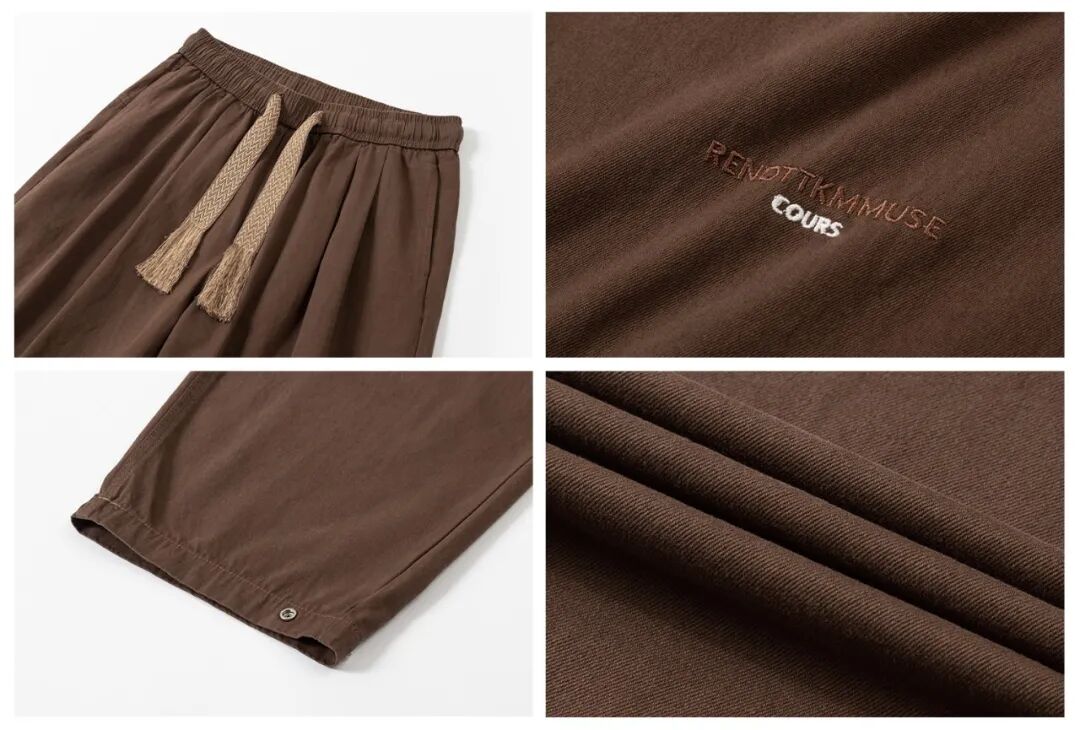 首先,裤子其实没有看起来那么厚,面料比较轻薄,加上其宽松的廓形,将日系里的慵懒感直接拉满!成色是偏砖红的一种咖啡色,好看又百搭!驾驭各种复古或者年轻活力的风格都完全ok。细节方面,最突出的莫过于腰间吸睛值满分的织带,以及膝前恰到好处的小刺绣,但我个人更喜欢裤脚的按扣设计,简直好看又实用。就是这么棒的一条裤子,现在入手还能立减90!