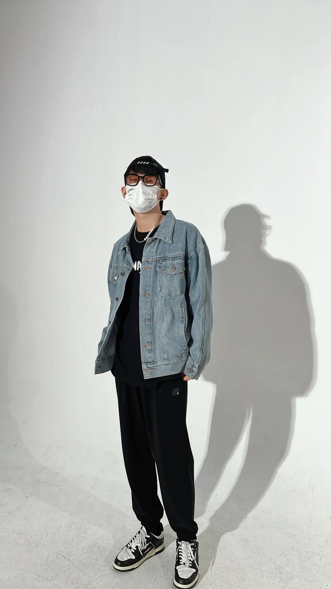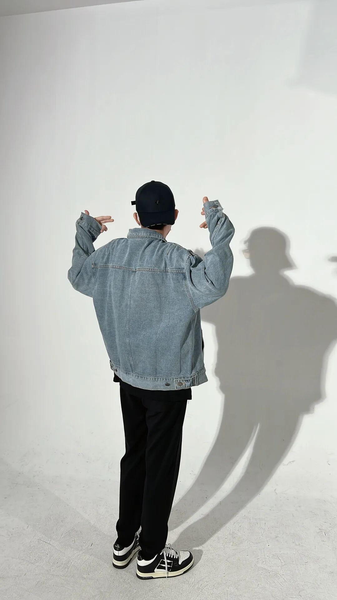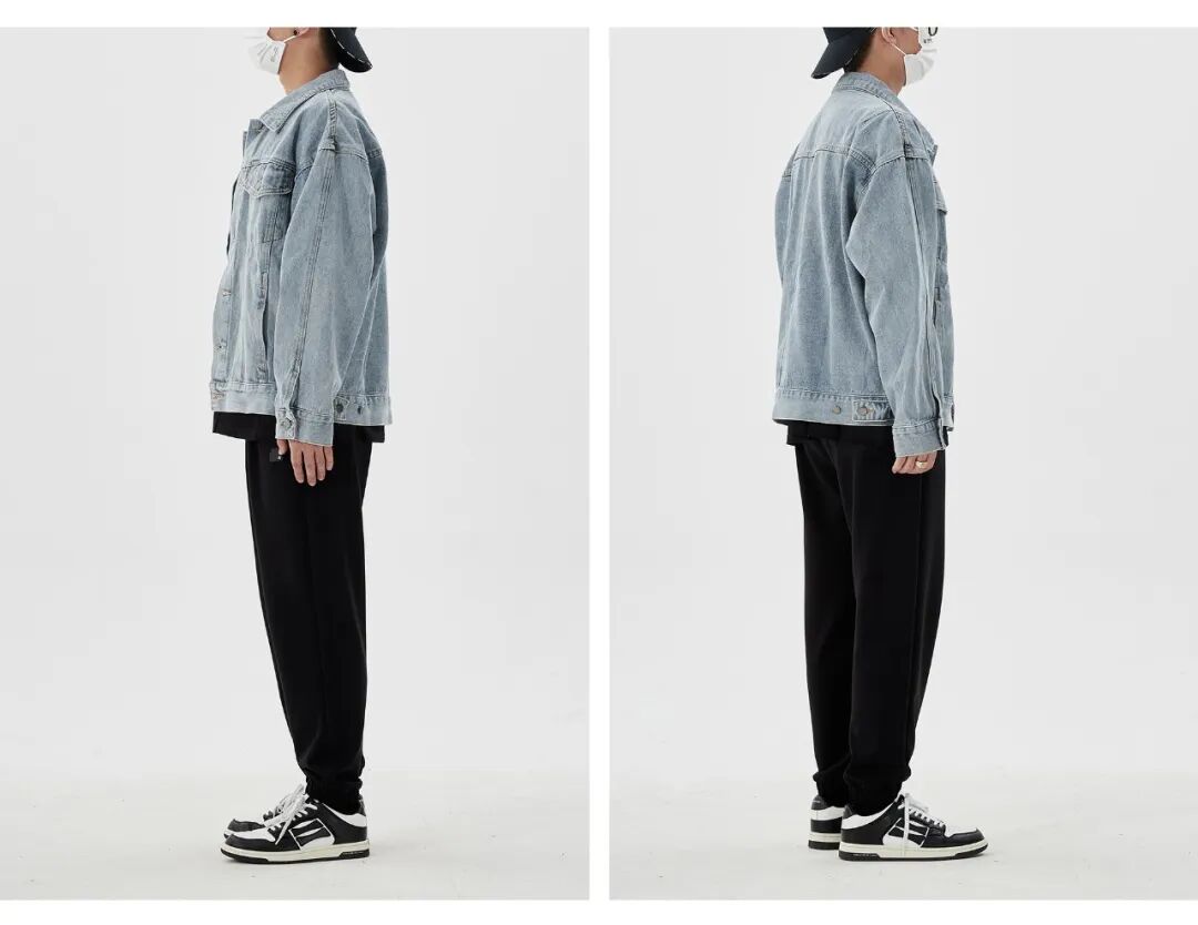 内搭与裤子同色隐藏腰线,一方面可以提高对身材的包容性,一方面可以着重突出牛仔夹克的细节,做到层次分明;搭配棒球帽可以更显年轻活力,街头感十足!