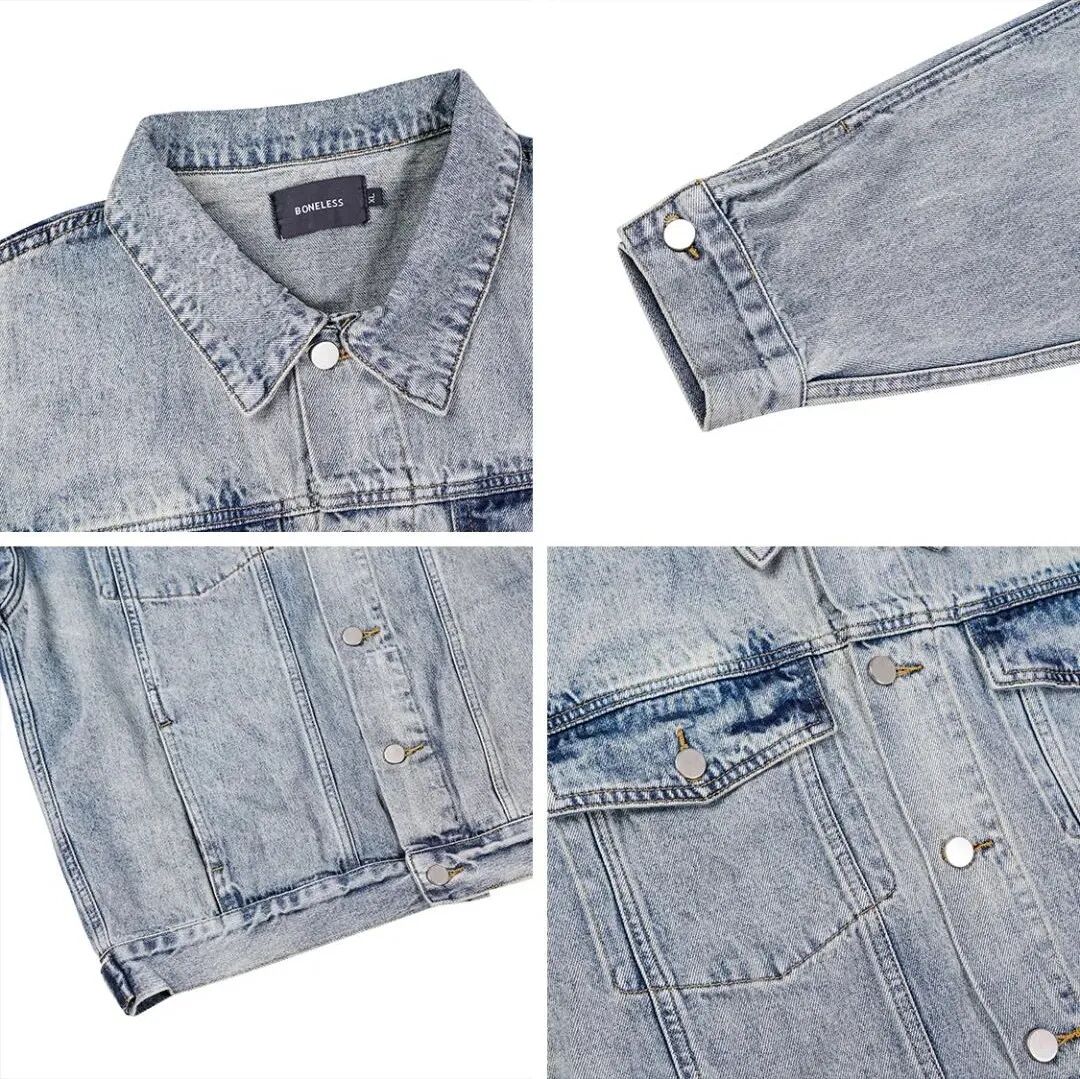 此款夹克采用了超重磅的无弹丹宁面料制作,整体设计更偏向水洗工艺和版型,做旧效果均匀自然,成色的品质也非常高。成衣宽松较长,适合绝大多数的身材,同样还是一件基础款单品,小白也能轻松驾驭!