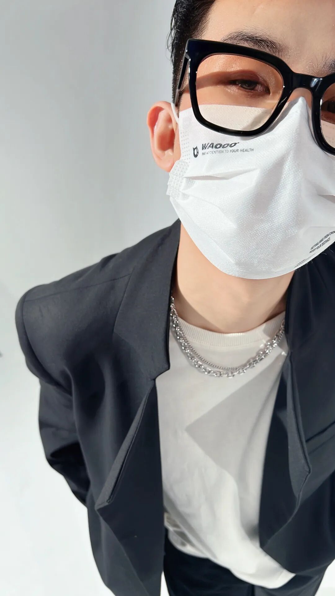 上身一件山炭黑日系宽松痞帅西装,内搭一件重磅圆领白T,下身再搭配一条黑色垂感抗皱九分西裤,最后脚踩一双AMIRI Skel-Top骨头鞋,呼应配色!