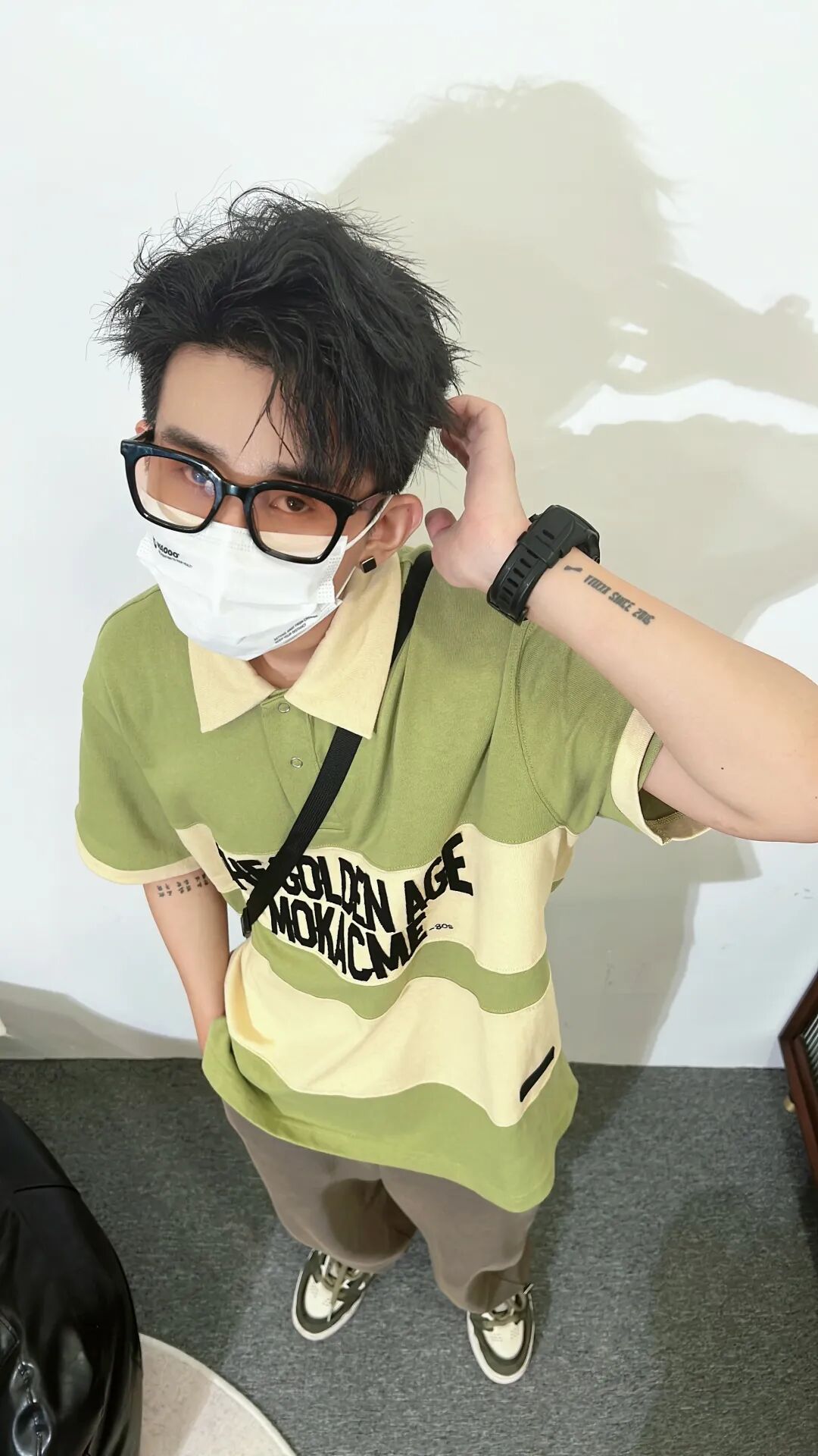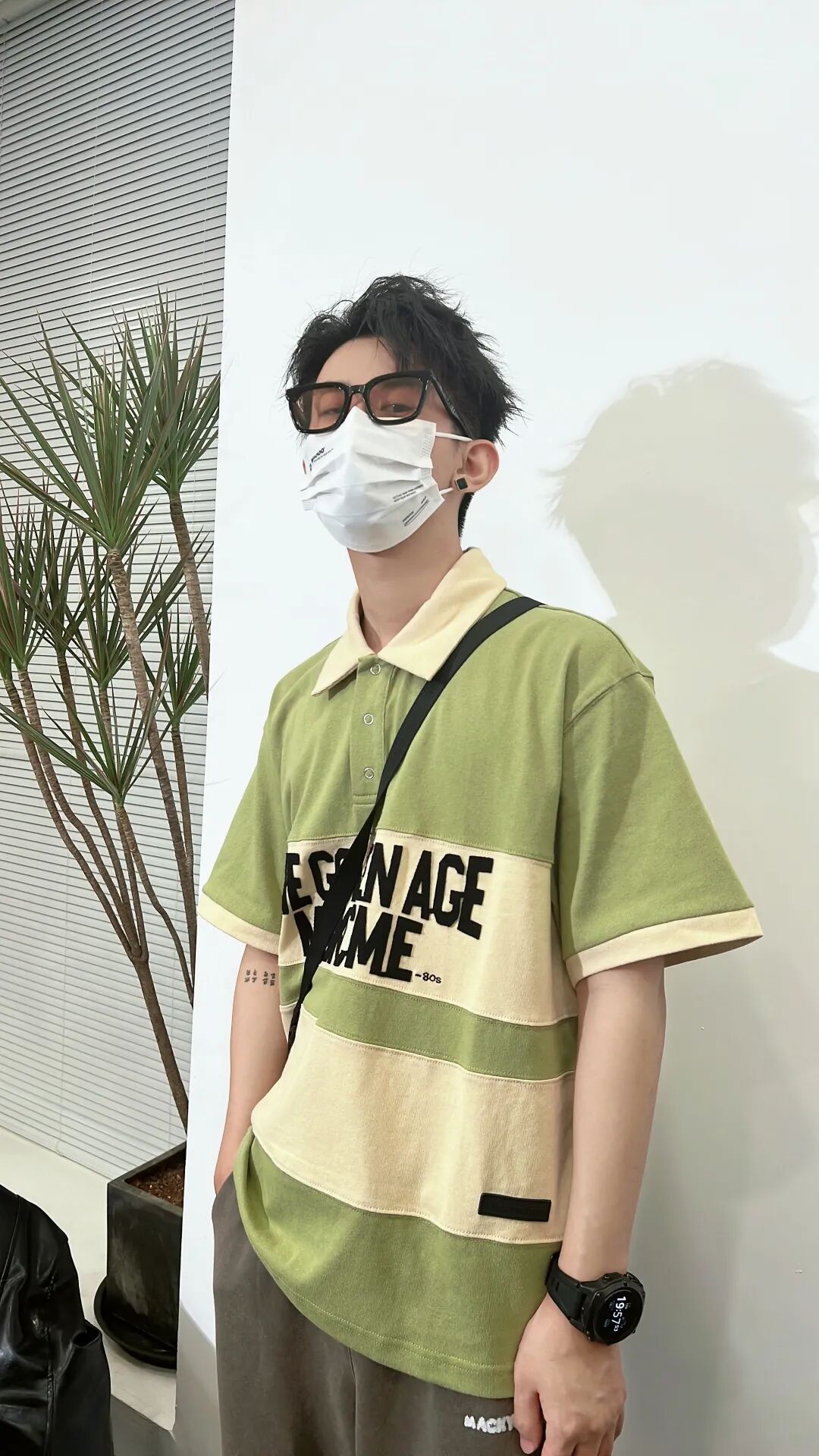想挑战彩色的polo衫,一定不要选择饱和度特别高的纯色,像大地色、橄榄绿和今天这种低饱和拼接的类型,会更显质感和高级,复古时髦两不误!