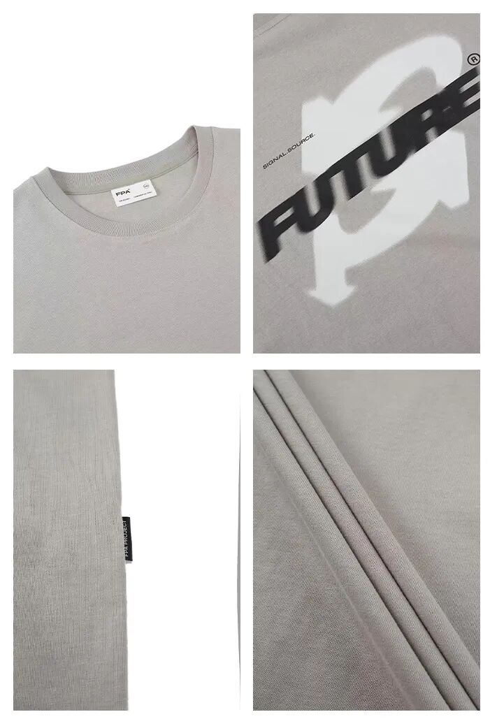 图案T恤千千万,让人心动的,它算一件,没办法,上身真滴帅!印花在前后幅有巧妙的呼应,图案采用模糊对称箭头设计,箭头指向中间的字体排版,后幅字体采用视觉强弱的设计排版,整体既简洁又耐看!工艺方面,选用265g全棉针织面料制作,厚度适中,上身软滑舒适,但挺阔感好!领口设置了通肩压条进行加固,稳定性良好,不易变形。衣服目前有黑、白、灰3色,都很好看,而且2件一起买更便宜!