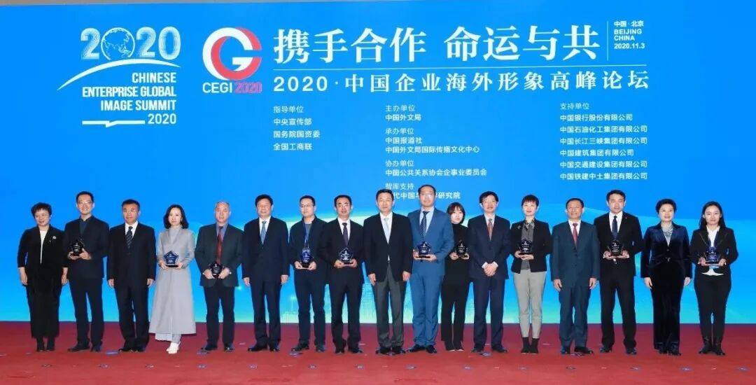 11月3日,2020年中国企业海外形象高峰论坛在北京举行。本届论坛主题为“携手合作 命运与共”,由中央宣传部、国务院国资委、全国工商联指导,中国外文局主办,中国报道杂志社、中国外文局国际传播文化中心承办,中国公共关系协会企事业委员会协办,中国银行、中国石化、中国三峡、中国建筑、中国交建、中土集团支持,当代中国与世界研究院为智库支持单位。