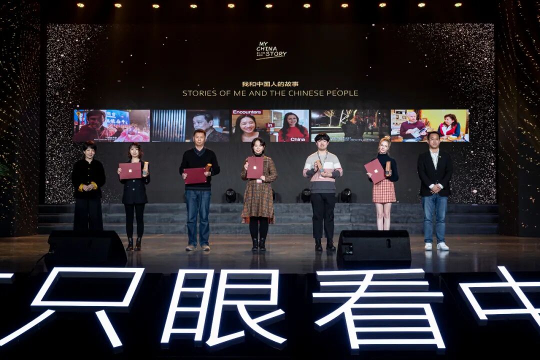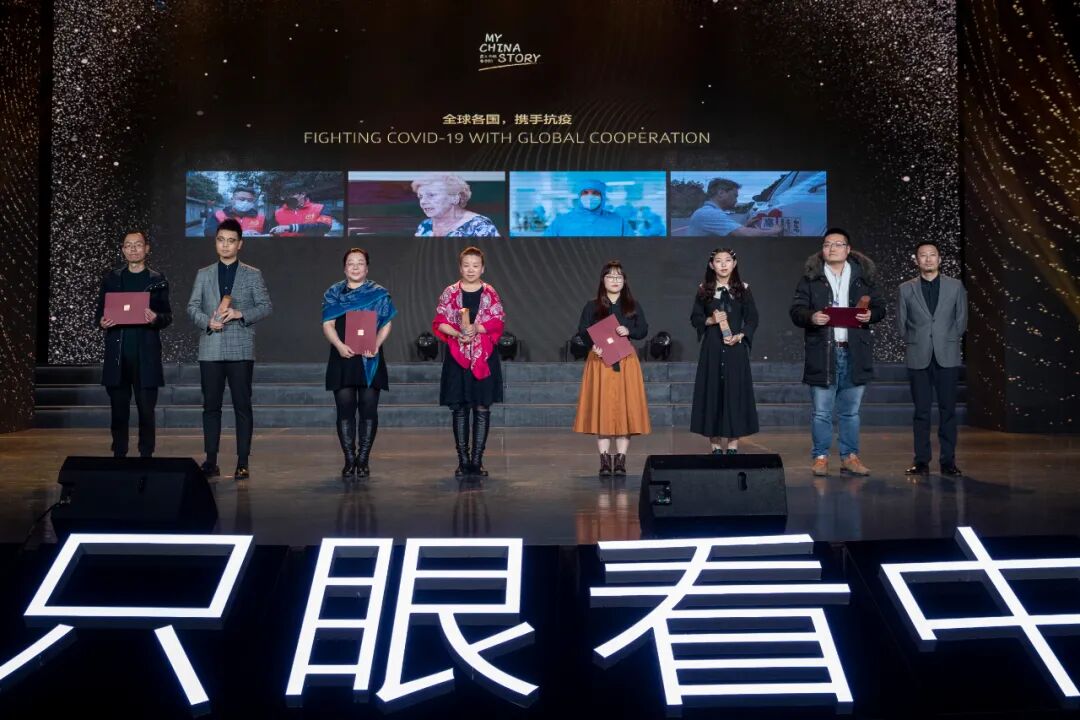 ▲中国纪录片网负责人张延利、北京雅迪传媒首席内容官周艳为《我和中国人的故事》单元获奖代表颁奖。
