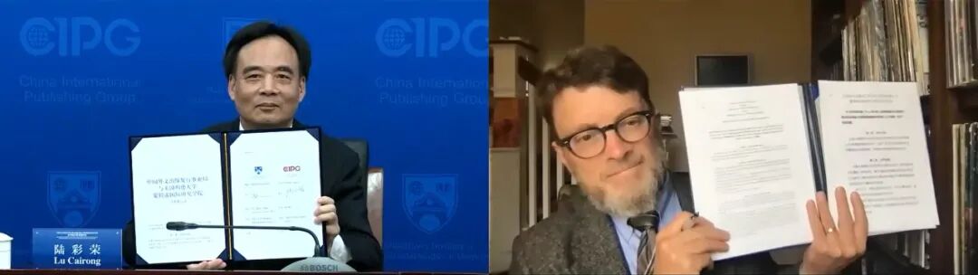 北京时间4月21日,中国外文局与美国明德大学蒙特雷国际研究学院通过视频连线方式举行合作备忘录签署仪式。中国外文局副局长陆彩荣与明德大学学术事务副校长兼蒙特雷国际研究学院校长杰夫•戴顿-约翰逊博士分别代表双方签署合作备忘录,双方将在国际传播人才培养、翻译考试海外合作、翻译行业研究、教学研发等领域进行全方位合作。