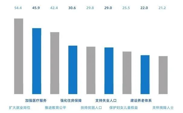 ▲中国促进社会公平的领域认可度(单位%)