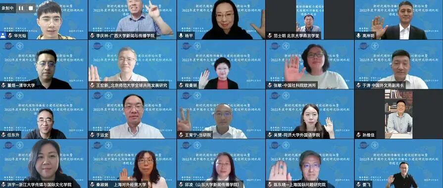 于涛在总结讲话中表示,国际传播理论研究是新时代加强国际传播能力建设的重要着力点,在大外宣格局中的地位和作用日益凸显。要做好中国外文局国际传播能力建设研究协调机制的课题项目,应该牢记“国之大者”,聚焦国家战略需求;增强使命担当,有力服务上级决策;讲求务实精神,提高研究科学化水平。于涛强调,中国外文局将按照中央有关文件精神,积极参与国际传播相关工作机制、协同平台、创新基地建设,进一步团结汇聚各方力量,推动学界业界充分发挥自身学科特色与学术专长,以科学合理的思考、客观精准的分析、有理有力的论证、切实可行的建议,为站在“两个一百年”历史交汇点上的中国与世界破题解惑,以优异丰硕的研究成果迎接党的二十大胜利召开。![]()