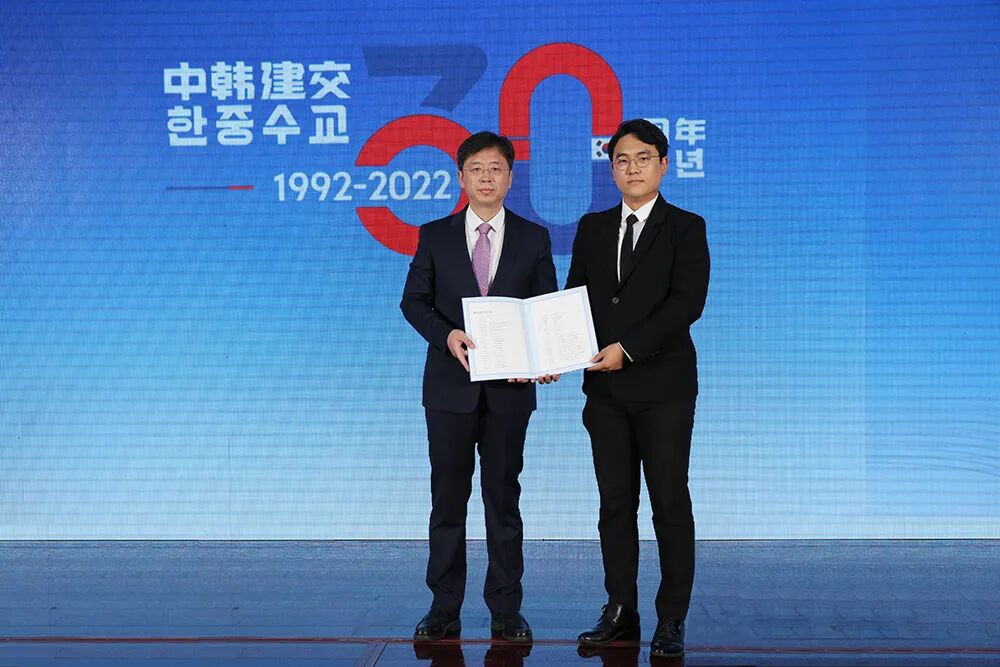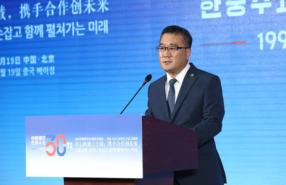 金洪培认为,自1992年两国建交以来,尽管有波折、有挑战,但两国始终秉持平等互惠、和平共处的主基调,围绕东北亚地区经济整体发展以及世界和平稳定,开启了许多具有划时代意义的重大合作,联手打造了一个又一个闪亮奇迹。过去30年来,中韩两国经济合作日趋紧密,形成了优势互补、高速增长、互利互惠的良性发展模式。在共创人类命运共同体灿烂明天和美好未来的历史进程中,两国仍有更为宽广和更为宏大的合作天地。△朴起洛致辞。
