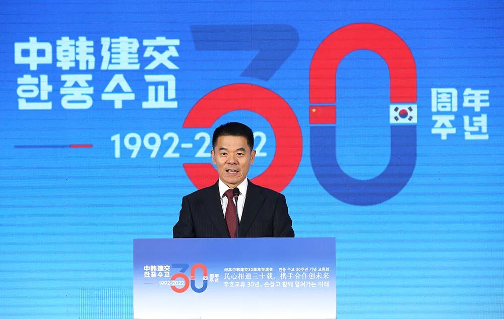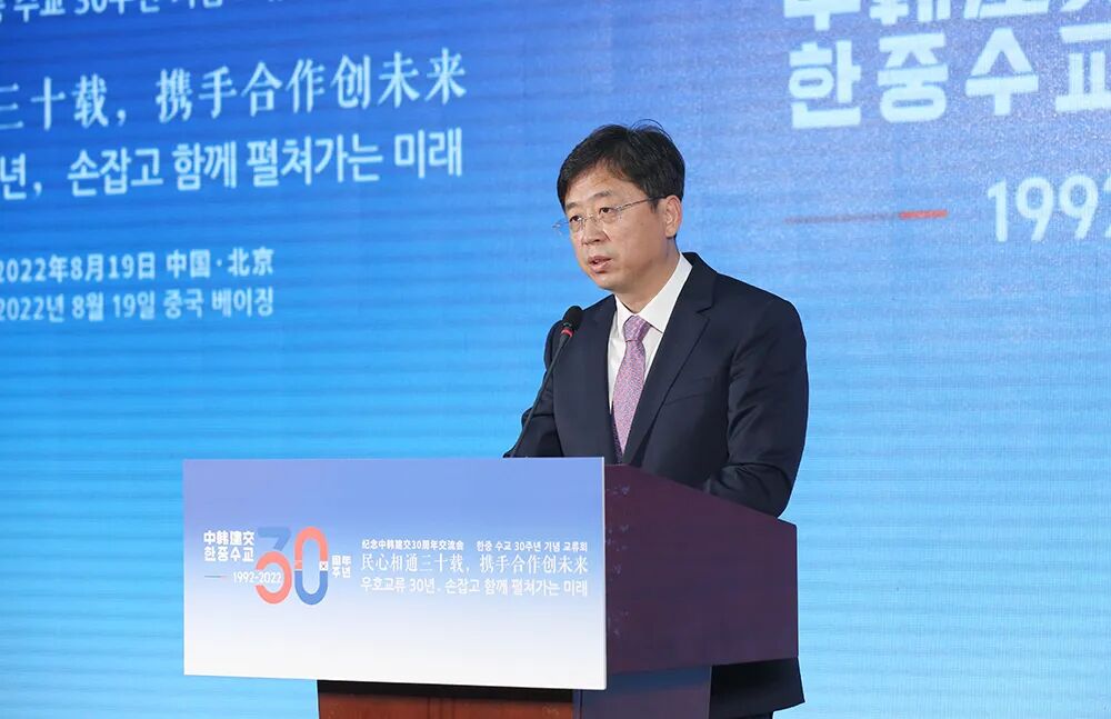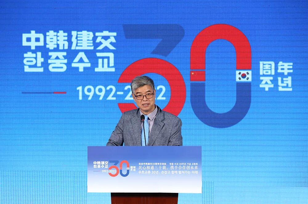 中国外文局副局长于涛、中国前驻韩大使宁赋魁、韩国驻华使馆公使衔参赞兼韩国文化院院长金辰坤、延边大学副校长金洪培、北京韩国人会会长朴起洛,以及中韩机构、企业和媒体代表等出席了本次交流会。中韩两国各界人士齐聚一堂,共叙友谊,共谋合作。于涛指出,中韩建交30年来,友好交流、合作共赢始终是双边关系的主旋律。中国外文局作为综合性国际传播机构,愿意为中韩关系发展贡献更大力量。对此,他提出三点建议:一是要全面推动交流互鉴,促进民心相通;二是要深化拓展务实合作,服务两国发展;三是要继续促进青年交往,共创美好未来。站在新的历史起点上,希望中韩携手同行,合作开创两国关系新未来,期待与中韩各界人士继续开展更加亲切友好的交流和更加富有成效的合作。△ 宁赋魁致辞。