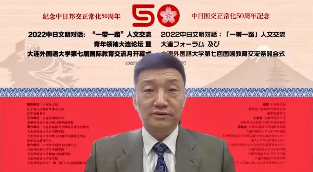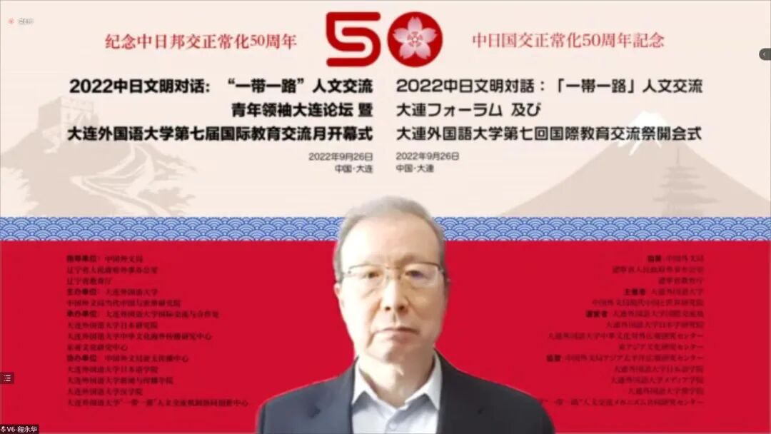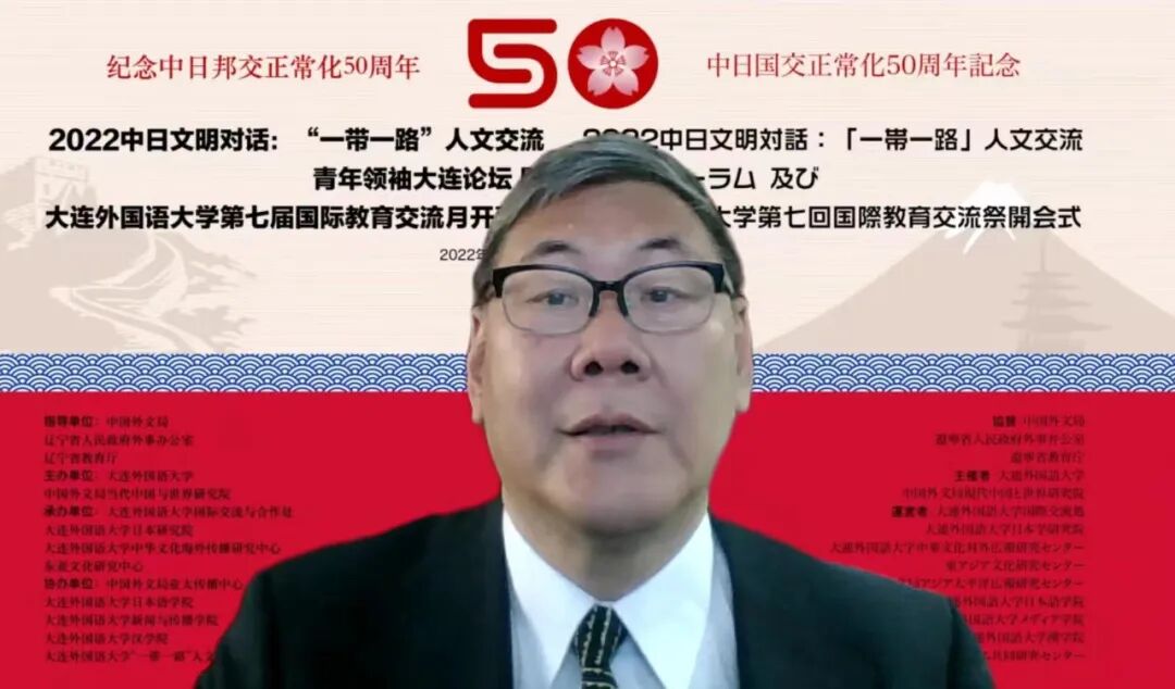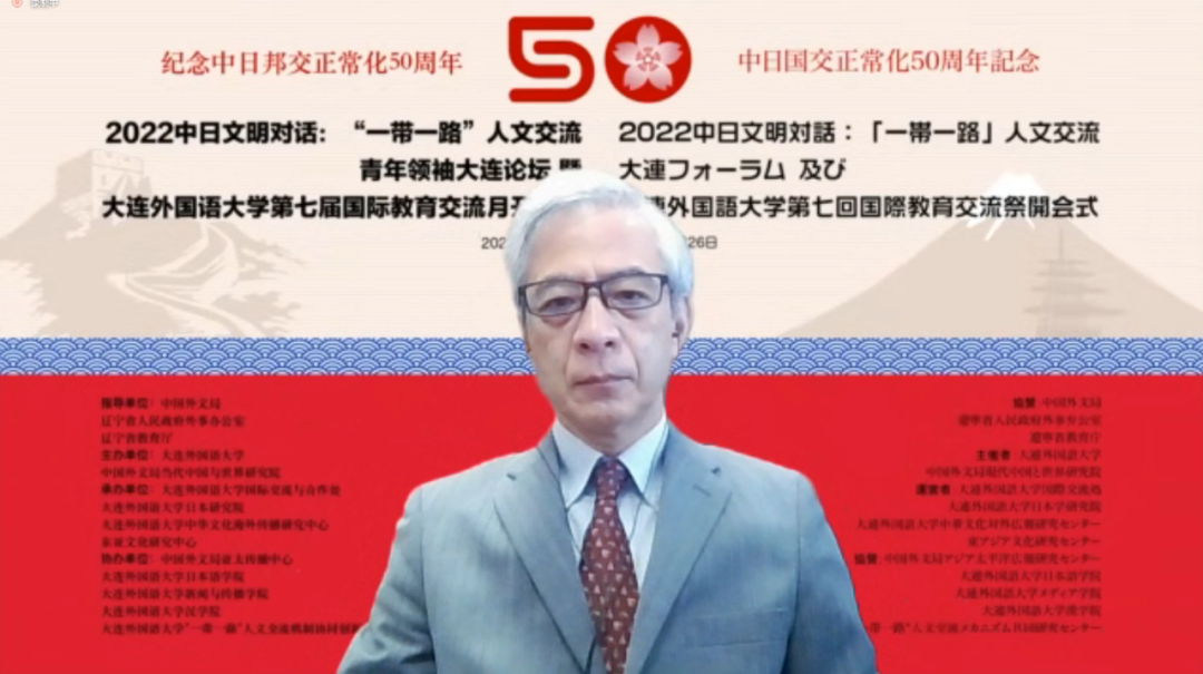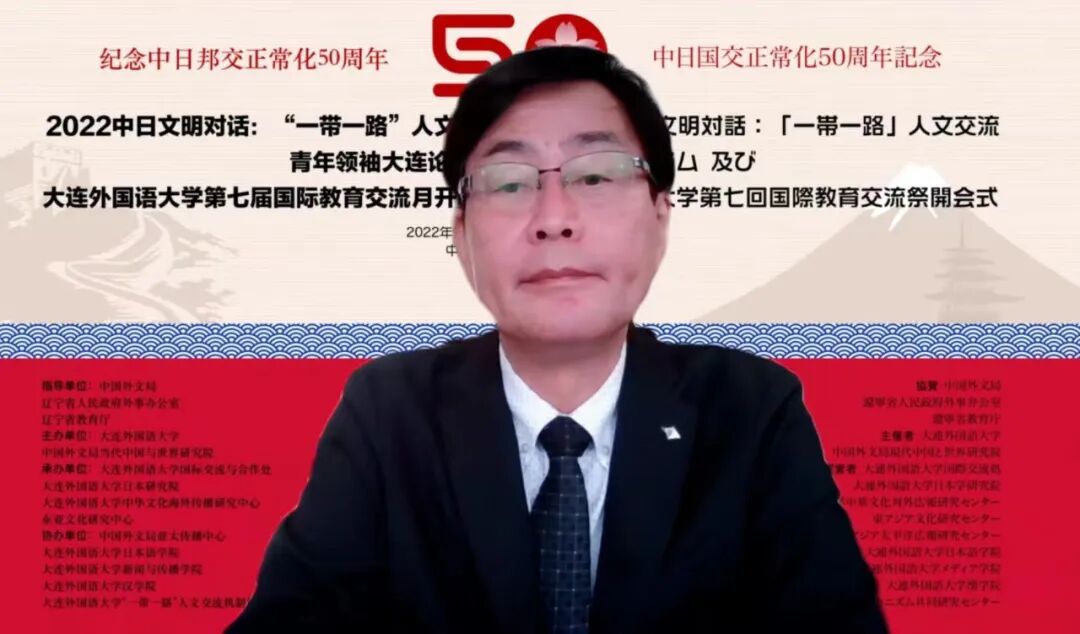 小仓勤在主旨发言中指出,长期以来,北陆大学与大连外国语大学形成友好合作,共同培养了600多名学生,毕业后活跃在两国的经济贸易等领域。疫情环境下,双方的交流也从未停止,不断进行教育文化领域的共同交流,追求日中学术共同发展。今后,北陆大学将争取更加开阔的校际合作,继续坚持线上线下结合的方式,提高国际交流项目的质量和效果,让日本学生感受中国博大精深的历史文化和当代中国发展的崭新面貌,将交流项目打造成为日中友好关系的重要载体。