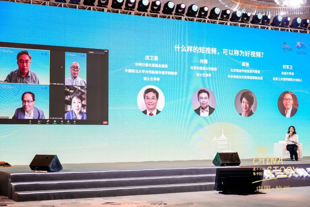 光明日报社原副总编辑、中国政法大学光明新闻传播学院教授、博士生导师沈卫星,北京外国语大学教授、博士生导师何辉,北京雅迪传媒首席内容官、中央电视台纪录频道原副总监周艳,纪录片导演、北京三多堂传媒联合创始人刘军卫四位评审专家围绕“什么样的短视频可以称为好视频?”进行交流分享与创作指导。