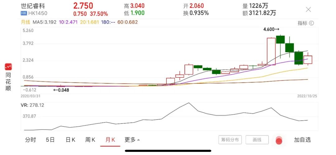 2021-2022年,世纪睿科的股价最高涨幅达到了94倍