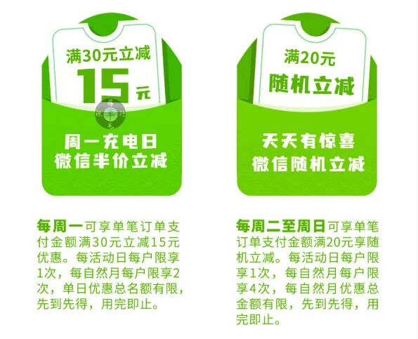 1、每周一10点,喜茶小程序,微信消费,满30减15元,日限1次、月限2次