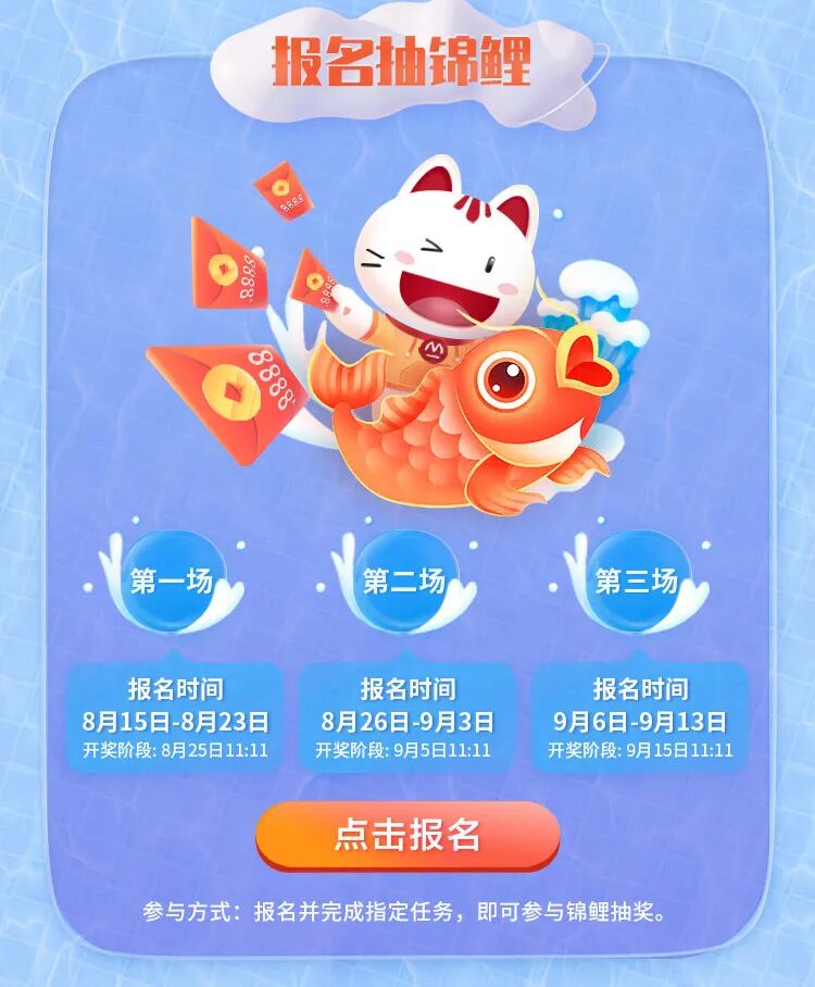 3场锦鲤狂欢,每场分别设置