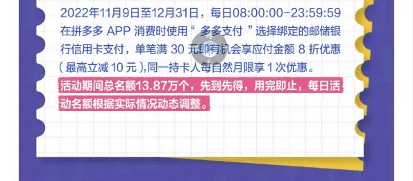 3、11.9-12.31每日8点,拼多多,满30元享8折(10元封顶),月限1次