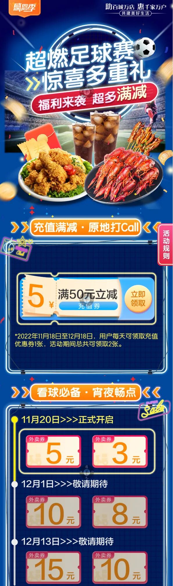 1、11.18-12.18每日9点,抢:话费充值券50-5,日限1次、共限2次