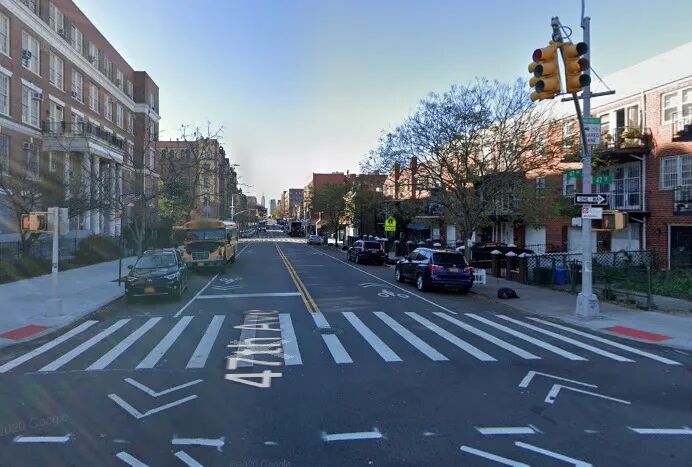 在Sunnyside47街夹47大道的转角处,一辆卡车在此处猛然转向,一个甩尾,正在自行车道上的涂爸爸被卷入了卡车的前轮。
