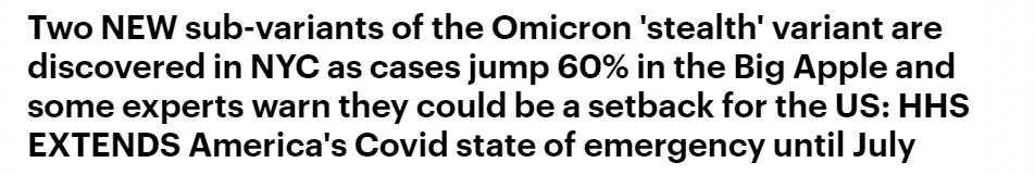 目前纽约病例猛增60%,HHS已经将美国的Covid紧急状态延长至7月。