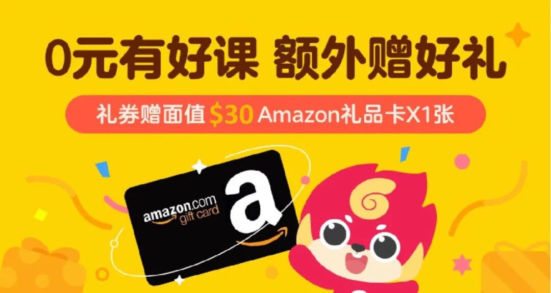 到课赠送$30 Amazon礼卡