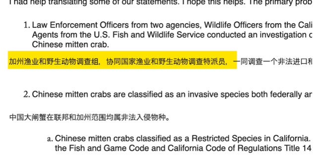 媒体也联系了渔猎局,负责人表示,渔猎局确实在羊肉大王商圈调查有关走私大闸蟹的案件,该案件由加州渔猎和野生动物调查组,协同国家渔猎和野生动物调查特派员一同调查负责,由于目前还在调查中,因此无法提供更多细节。