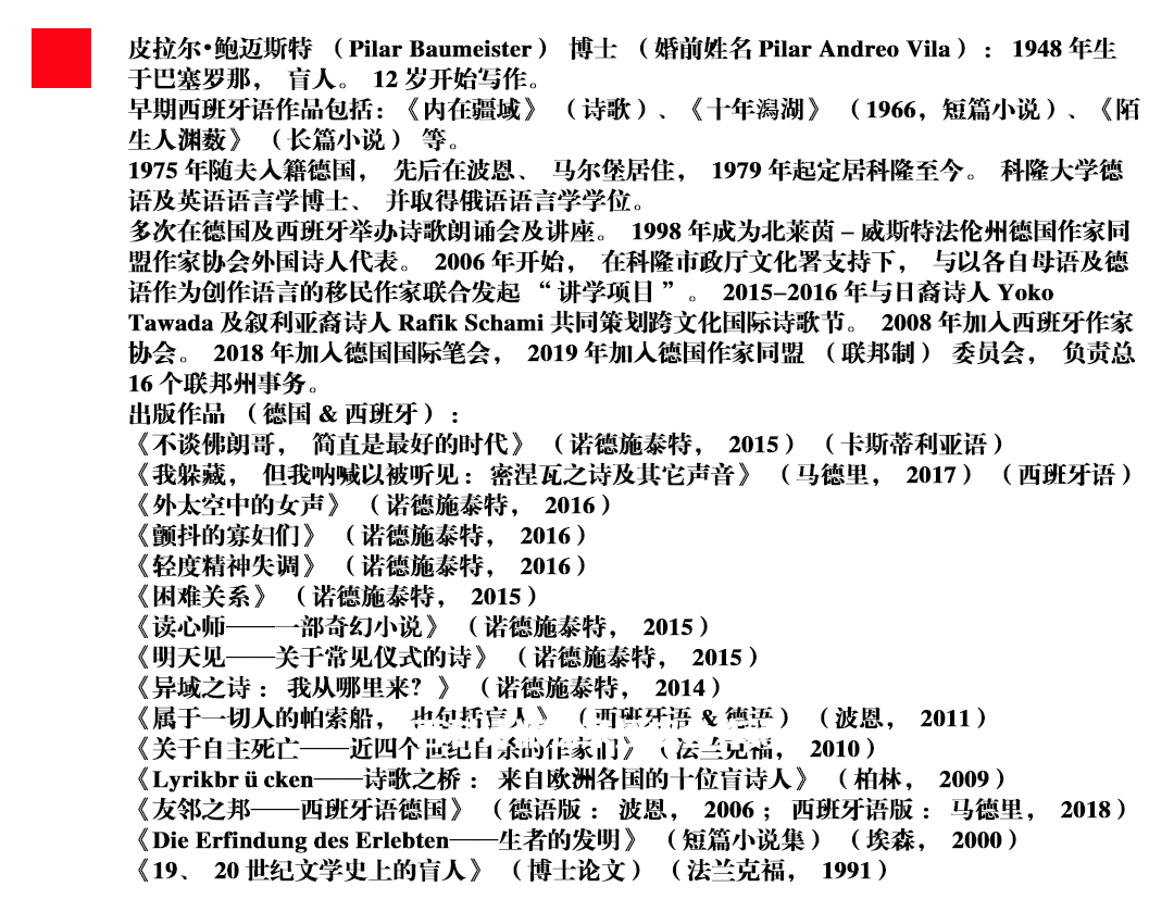 选自皮拉尔•鲍迈斯特(Pilar Baumeister Andreo)诗集: