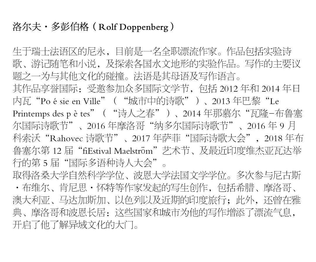 “百科诗派”创始人、智库型长诗/小说/诗剧/实验文本作者、“泛性别主义”写作首倡者、从事中、日、英、法、德多语言写作。中国作家协会、中国诗歌学会、中国翻译协会会员。著有长诗11000行长诗“前沿三部曲”、六万行结构主义长诗“风能玫瑰”等,小说四十万字,诗剧及实验文本若干卷。出版四部中文诗集:《印象之内,物象之外》、《它们曾从卓尔金历中掠过》、《前沿三部曲》、《播云剂》(百科诗派创派10周年年鉴系列)、一部英文诗集《Cloud Seeding Agent》(美国Pinyon Publishing出版社,2020)及多部译著,最近一部为2018年8月纽约New Feral出版社出版的《成为一条河流》(Bill Wolak著)。与西班牙当代最重要诗人之一杰姆·B.罗萨联合主编《无国界诗歌VII:中国-西班牙当代诗人》(西班牙Olelibros出版集团,2021)。作品被译为法语、德语、西班牙语、意大利语、瑞典语、葡萄牙语、阿拉伯语、爱尔兰语、加利西亚语、芬兰语、罗马尼亚语、希腊语、爱沙尼亚语、俄语、孟加拉语、希伯来语、马其顿语、土耳其语、保加利亚语、日语、匈牙利语、阿尔巴尼亚语、波斯语、克罗地亚语等,发表包括英国《the New Humanist》《新阿拉伯人报》、爱尔兰《Comhar》、美国《Madswirl》《Pinyon Review》《Contrapuntos》、意大利《La Macchina Sognante》《Argo》《Rivista Letteraria》《L’Ulisse》、西班牙《La Libélula Vaga》《Aullido》、墨西哥国家诗歌学会《Poesía÷Neón》、希腊《Diastixo》、德国《Literarische Blätter》、法国《Recours au poème》、阿根廷《Buenos Aires Poetry》《Revista Excéntrica》、保加利亚《普罗夫迪夫文学》《GABRIELL-E-LIT》、葡萄牙《Adelaide》、罗马尼亚《Actualitatea Literară》《Poesis》《Viața Românească》、阿尔巴尼亚《Obelisk》、俄罗斯《Лиterraтура》《Новая Литература》、克罗地亚《radio gornji grad》等杂志,被收录入西班牙《Caminos sin fronteras》等选本,曾当选巴西文学大刊《Revista Conexão Literatura》封面诗人,在加拿大渥太华CKCU-FM 93.1波斯语电台等播放,参加国际融媒体专辑《Sal——国际诗歌 ╳ 音乐跨界专辑》(葡萄牙)等多个跨界艺术项目;著作被美国、英国、德国、法国、俄罗斯、爱尔兰、新西兰等国一百余家国家图书馆、世界顶级名校图书馆和大使馆大规模收藏。受邀参加“Poetry Vicenza诗歌节”(意大利)、“Bitola Literary Circle”云端诗歌节(北马其顿);Aco Karamanov国际诗歌节(北马其顿)等国际诗歌节。2020年策划“100位国际一线诗人精品诗歌云诵读&表演国际诗歌节”——“誓[诗]大会”。百科诗派“2018人工智能纸魔方”(六国语版)”、“2019:创派12周年纪念徽章”、“百科诗派12周年‘诗 ╳ 影 ╳ 艺’跨界艺术联展册”+“2020‘诗 ╳ 影 ╳ 艺’跨界艺术联展册”、“2020年豪华精装版“天·地·人”摄影画册诗历”“‘国际誓[诗]大会’高定CD专辑”、“红 • 无限”诗密码魔方、“诗海密卷•百科诗派2021菲林日历”文创项目总策划及总设计师,所发起“百科之友主题跨界创作工坊”创作出各类综合文本、摄影、绘画、装置、音乐、对联、朗诵、书法作品二百余件。曾授权其独家翻译诗歌的包括美国、瑞典、爱尔兰、英国、澳大利亚、意大利、西班牙、加拿大、俄罗斯、沙特阿拉伯、法国、葡萄牙、芬兰、秘鲁、阿根廷、印度、日本、古巴、洪都拉斯、哥伦比亚、阿尔巴尼亚、北马其顿、罗马尼亚、玻利维亚、巴勒斯坦、厄瓜多尔等的200余位国际诗人。“2021国际性别平等年圆桌论坛”发起人。2018年独自游历全国名山大川,包括全程徒步登顶泰山。俄罗斯国家图书馆采编部部长T.V.彼得鲁先科将百科诗派著作誉为“横贯当代中国诗坛的百科诗学主义之强流”,多米尼加国家图书馆馆藏发展部部长Glennys Reyes Tapia则称之为“博大文化代表、书志编纂研究瑰宝”。