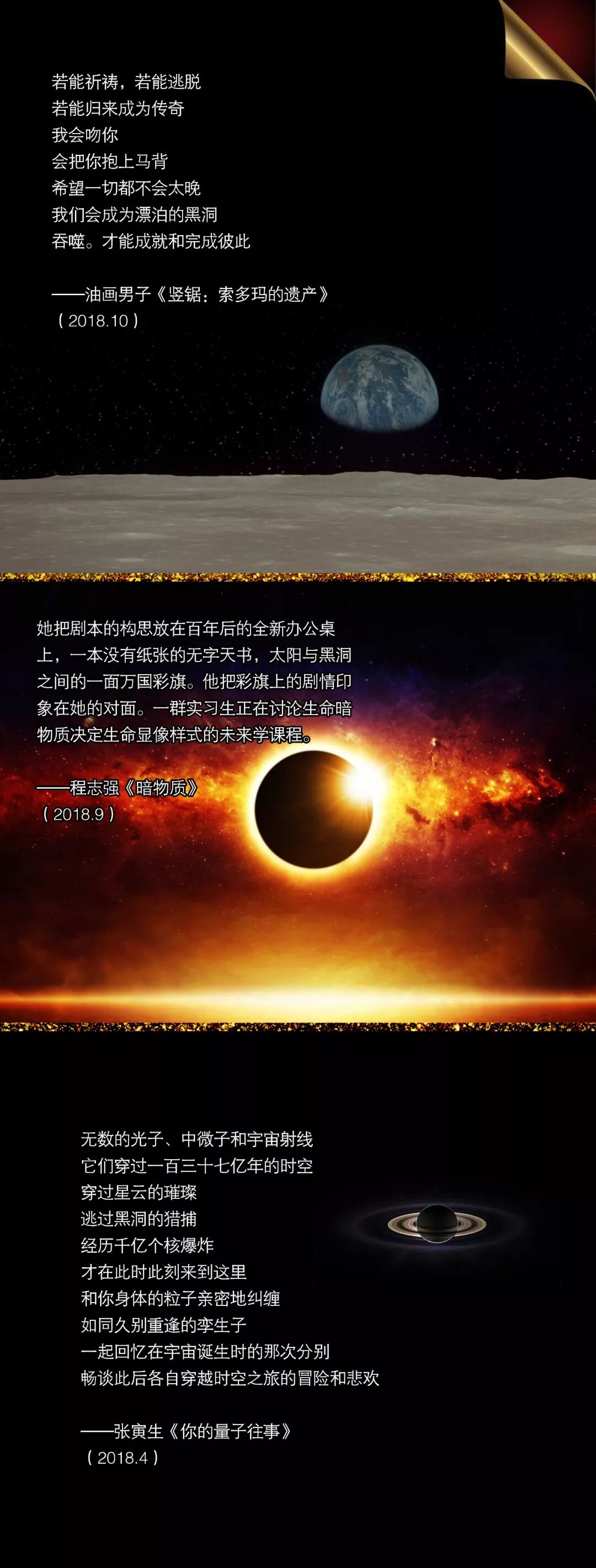 2017年出版“百科诗派创派十周年年鉴”系列诗集,包括殷晓媛《播云剂》、海上《隐秘图腾:琥珀星》、王自亮《浑天仪》、浪激天涯《超弦之玄》、山水如歌《潘洛斯阶梯上的蚂蚁》,充分展示了这一横跨北京-巴黎的国际流派在重构诸多学科的跨文体、多语言先锋写作中,孤标独步的学术立场与别无旁骛的执念与匠心。