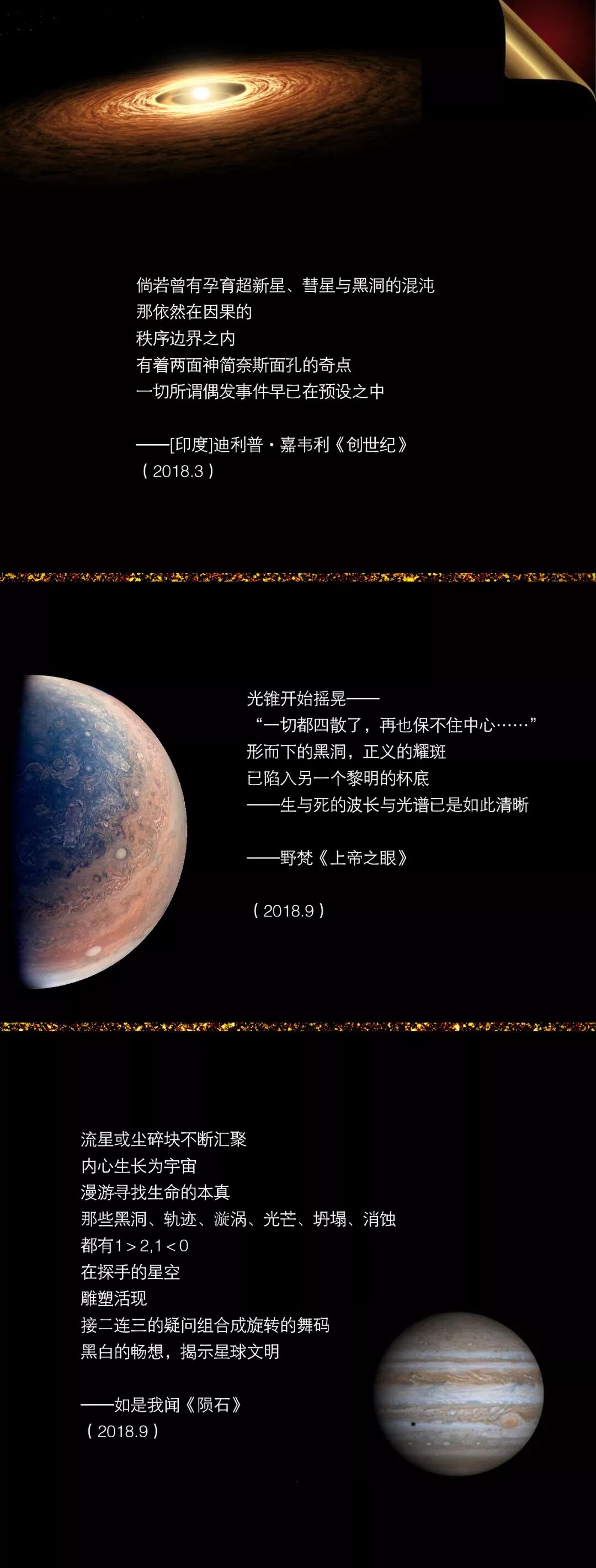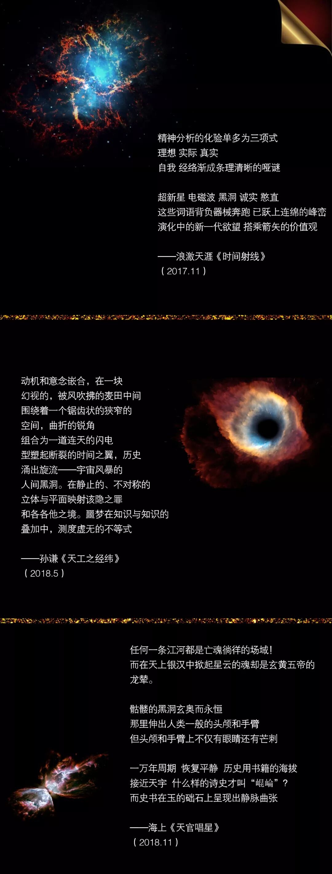 “百科诗派”提倡雌雄同体式的“泛性别主义”写作,阐释宏观宇宙与微观性别的机制类同,主张破除性别壁垒与禁忌,进行“阿尼玛”与“阿尼姆斯”的心理探索与自我开发,无限拓展文本的自由度与开阔性,营造非对称、非连贯,而又平行或互补的性别表达,在写作上实现去集群化、去关联化,自成宇宙,内部贯通。