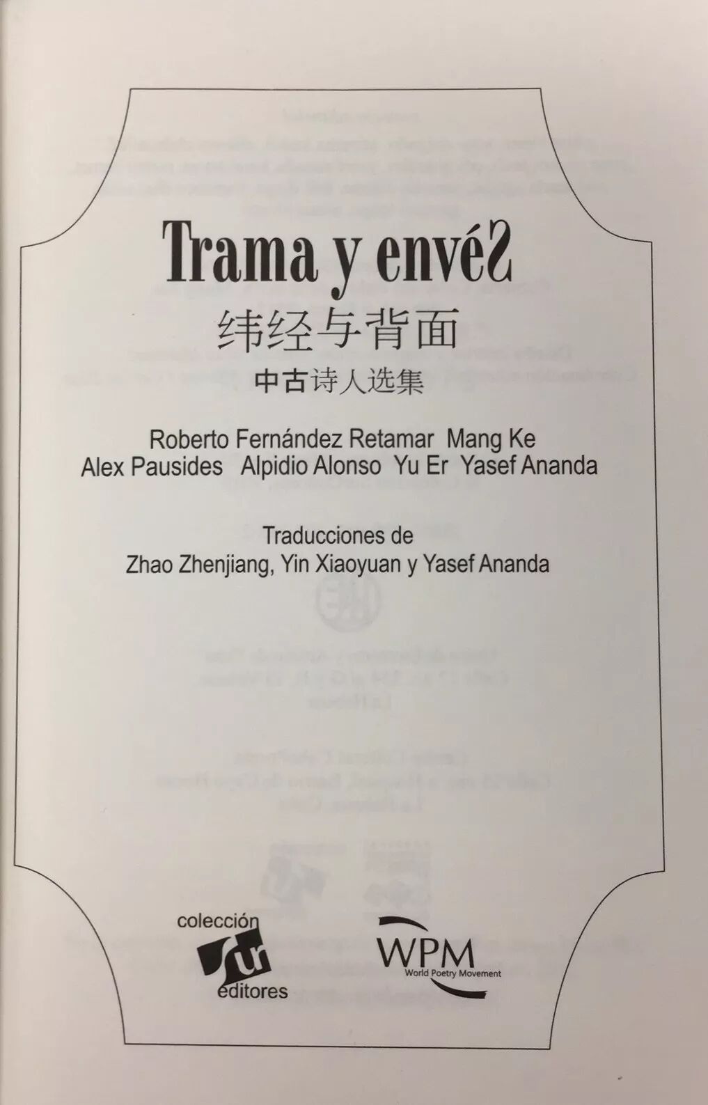 近日,《纬经与背面——中古诗人诗选》由位于哈瓦那的Colección Sur Editores出版社出版,收录六位诗人精选诗歌,译者为赵振江、殷晓媛及亚瑟夫•阿南达•卡尔德隆。其中罗伯特·费尔南德斯·瑞特马尔诗歌部分由殷晓媛翻译。