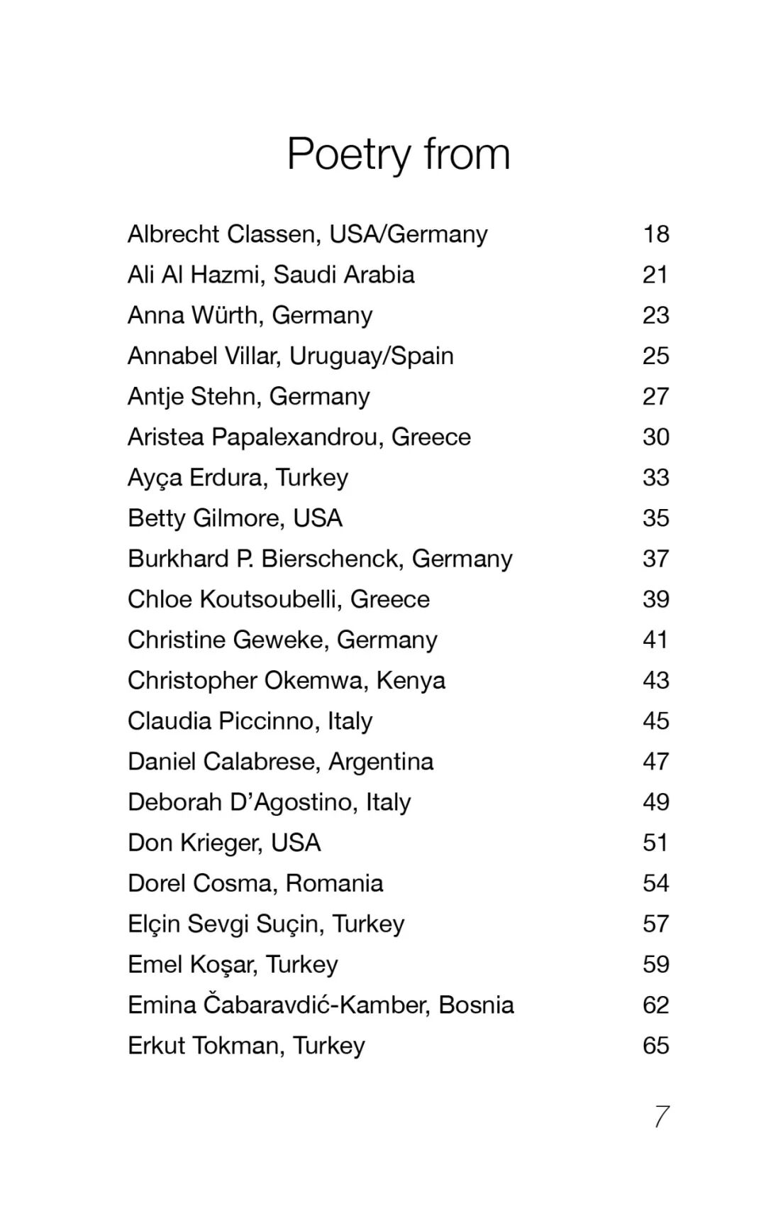 本次出版的国际诗选: