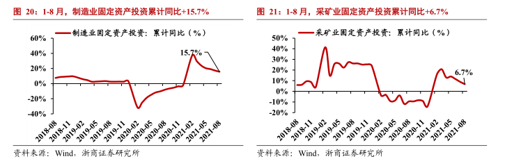 (3)工业:8月制造业、采矿业固定资产投资单月同比+7.1%、-3.5%。