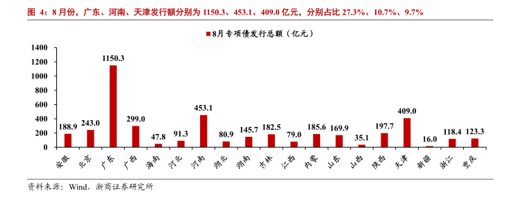 (2)专项债提速:8月新增地方专项债4216.3亿元,较7月环比增加824.8亿元
