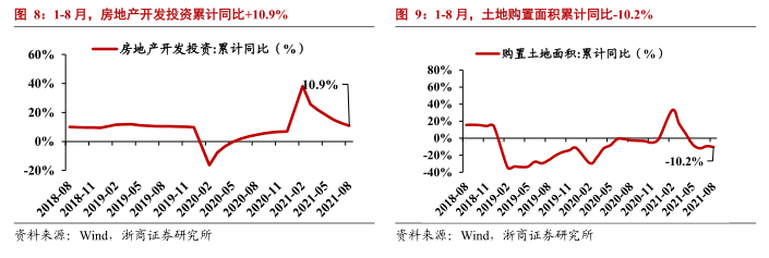 (2)基建:8月基建投资(不含电力)单月同比-7.0%,投资力度趋缓;