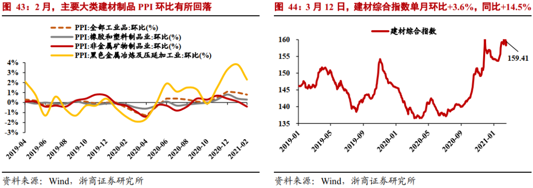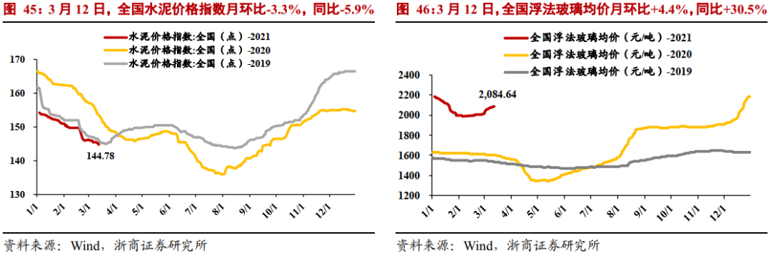 3月12日,建材综合指数159.41点,单月环比+3.6%,较20年同期上涨+14.5%。