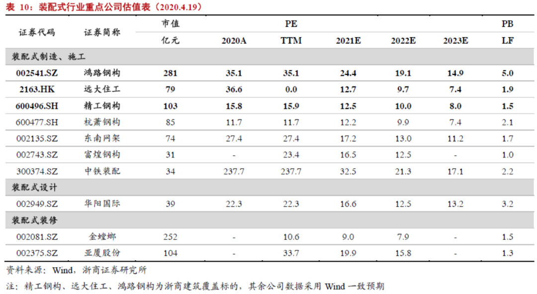 8. 投资建议:继续关注价值低估、成长空间足的装配式标
