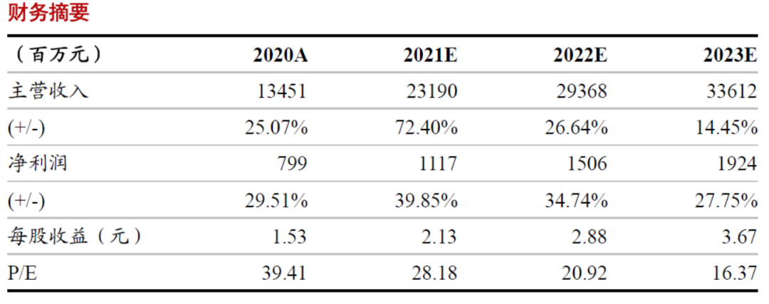 在充分考虑公司主业成本未来可能出现变动前提下,我们预计公司2021-2023年实现归母净利润分别为11.17亿元、15.06亿元和19.24亿元,对应当前股价PE分别为28.2倍、20.9倍、16.4倍。维持“增持 ”评级。