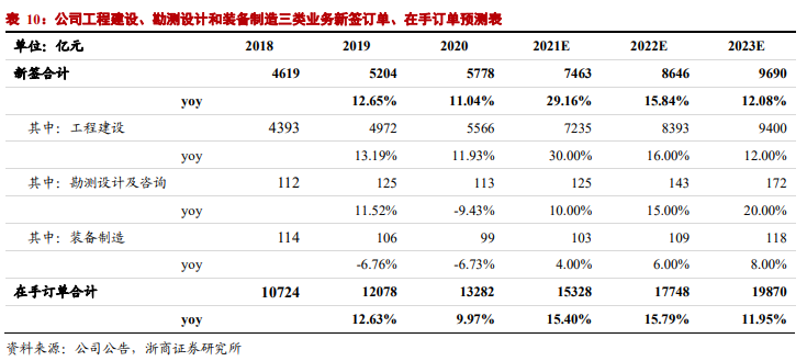 (2)公司勘测设计及咨询业务新签订单增速分别10.00%/15.00%/20.00%;