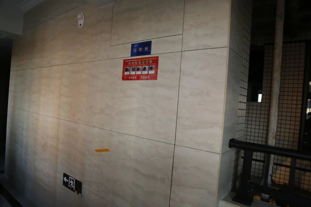电梯入连廊转角处,地砖精心设计高低坡度差,具防水效果。