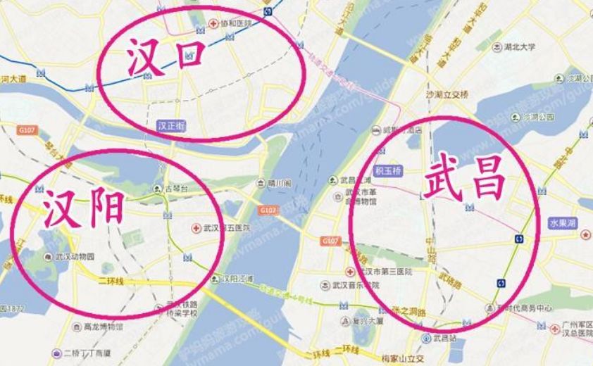 ↑ 武汉分三镇,汉口,武昌,汉阳↑