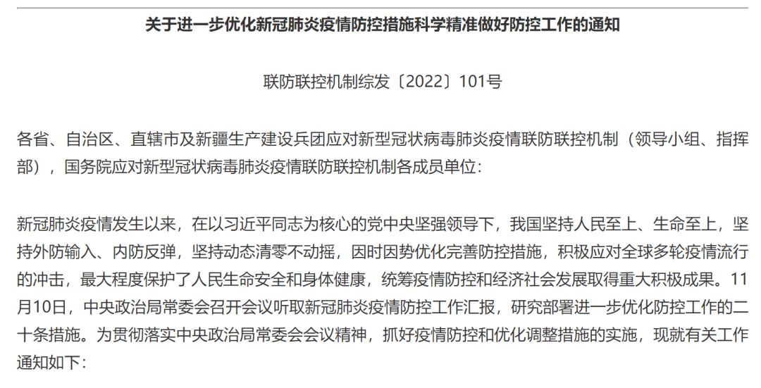 11月11日,国家卫健委发布关于进一步优化新冠肺炎疫情防控措施科学精准做好防控工作的通知。入境人员隔离变为“5天集中+3天居家”