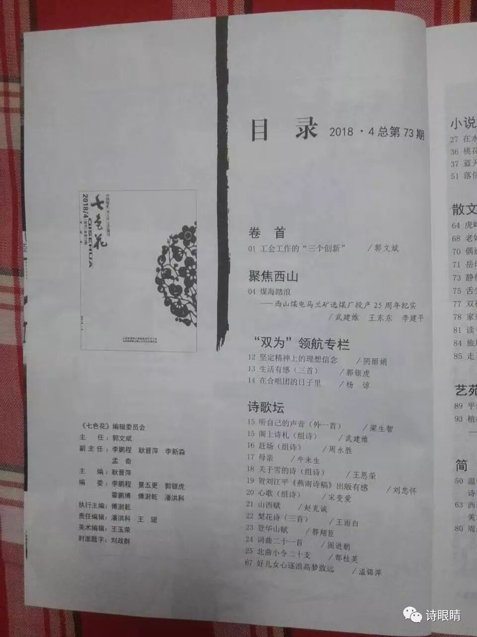 C\ 2018/4(季刊)-中国煤矿“双十佳”文艺期刊《七色花》刊发我的十二首诗《关于雪的诗》(组诗);