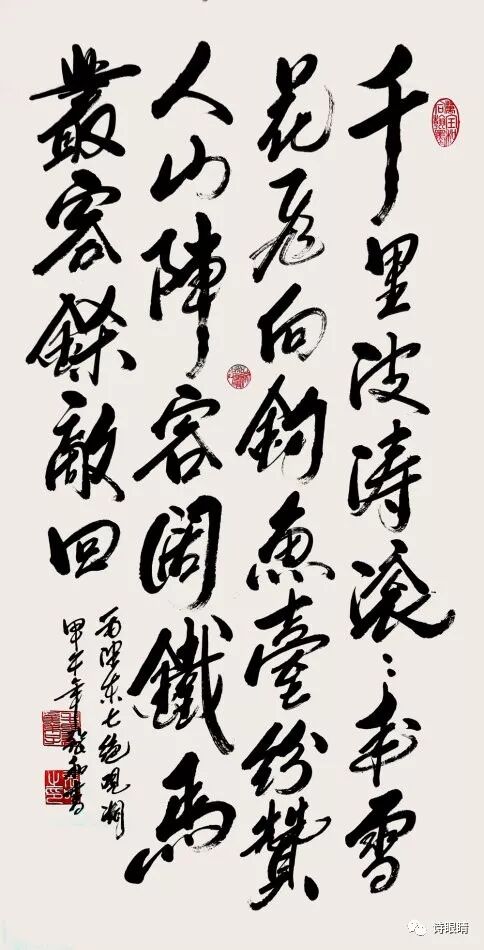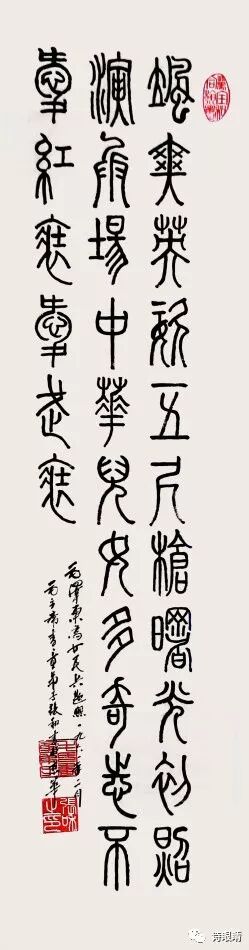 观其字,尽可看到古之诸家的根基神韵,但是却明显不是古之哪一大家的单纯摹写。不论在先生的哪幅作品下,都会被打动,被吸引,被震撼。观其作品,或有山川大岳之势,或有清泉细流之隽永,或有丝竹银弦之清吟,或有海涛奔突之雄豪,或有黄钟大吕之庄端……